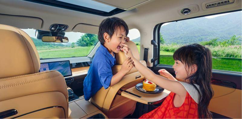 第二排超级零重力座椅留给父母,一键躺倒、腿托升起,老两口在车上补个觉,下车比在家休息的还精神。孩子坐第三排,座椅调整好,小桌板备好Pad、零食就是“移动游乐园”,一路可以不吵不闹。到达目的地,双侧电动滑门一键开启,老人下车不用弯腰,孩子自己蹦下来,一家人的春游从上车那一刻就开始了。另外,后排空调独立控制,风吹不到人,也不用担心易感冒。