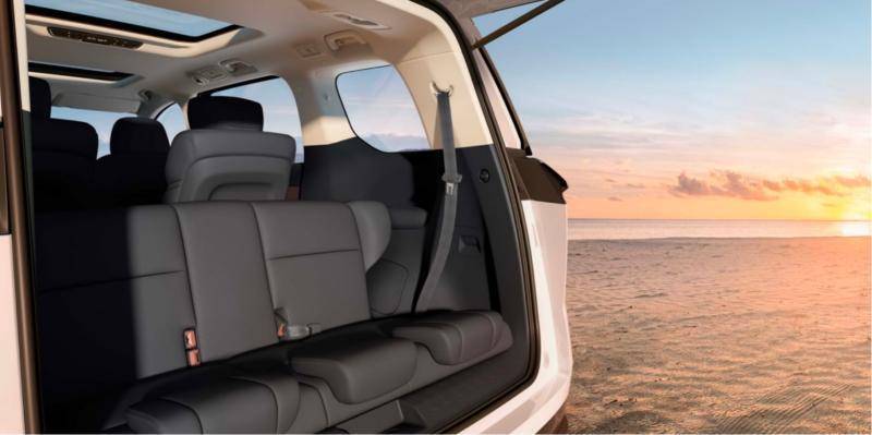 对于二胎家庭而言,如果周末带俩娃去露营,传祺E8的大空间则能轻松收纳各种露营装备和孩子需要的各种零碎。只需要将三排翻转隐藏至地台下,关上后备厢门,瞬间变身大号储物舱,24寸行李箱能塞下12个。
