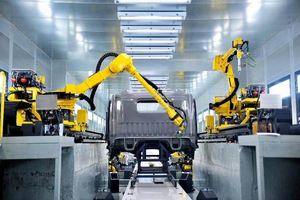 VAN车制造也非常精细,焊装车间的51台KUKA机器人,均采用中频焊接控制技术,能自动匹配不同厚度的板材,减少飞溅。视觉测量系统用4台机器人搭配激光视觉,对白车身做3D在线检测,一旦发现偏差,立刻拦截。