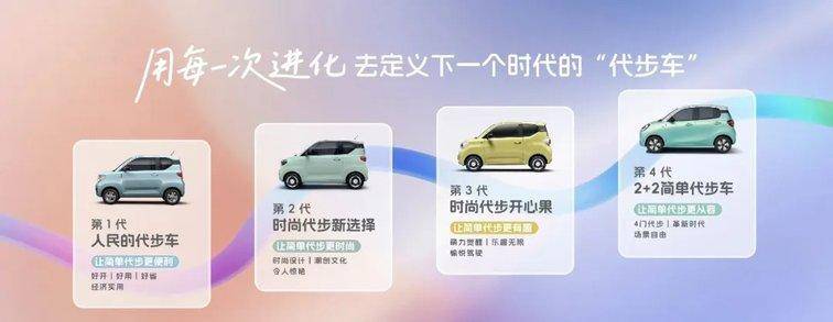从第一代开辟代步车蓝海市场,到马卡龙、GAMEBOY引领潮创文化;从第三代让简单代步更有趣,到第四代引领代步车四门时代,宏光MINIEV始终以用户真实生活场景为锚点,用每一次进化去定义下一个时代的“代步车”。