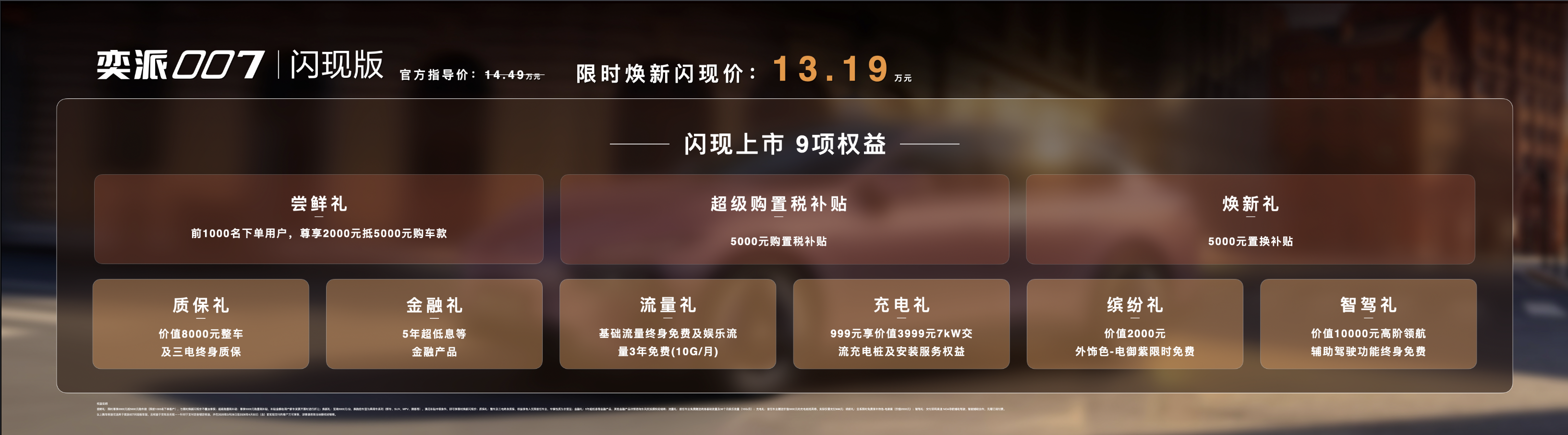 当玩车梦想真正照进现实,智能与安全便成为不可或缺的核心。奕派007闪现版配备15.6英寸2.5K中控智慧屏与10.25英寸仪表屏,搭载双AI大模型智能语音助手,全场景语音交互流畅便捷。还有高速NOA导航辅助驾驶、记忆泊车辅助LAPA、爆胎稳行VDC Plus、540°全景影像、哨兵模式等智能配置悉数加持,进一步提升行驶安全性。此外,奕派007闪现版荣获中国十佳车身奖项,通过了C-NCAP五星安全认证,还可享整车及三电终身质保,让个性化玩车真正安心。即刻下订,可享2000元抵5000元尝鲜礼、5000元超级购置税补贴、至高5000元置换补贴等总价值高达36800元的9重礼遇,限时焕新闪现价13.19万元。
