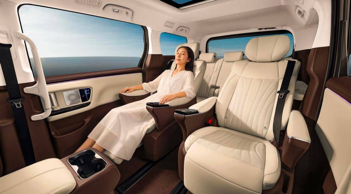 二排配备零重力航空座椅,采用10层结构+零压海绵,配合10向电动调节、8点按摩、3档通风加热,而且像17.3英寸高清吸顶屏、智能冷暖冰箱(-6℃~50℃)都有配备,带来头等舱般的享受。
