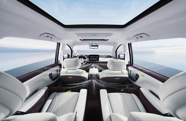 全车93处声学包+5块双层隔音玻璃、米其林静音轮胎等,怠速噪音低于图书馆标准,120km/h时速下后排交谈依然清晰,关上车门,就是另一个世界。17.3英寸高清吸顶屏,后排秒变家庭影院;智能冷暖冰箱(-6℃~50℃),夏天冰镇饮料,冬天保温热饮;400mm超低地台(比同级低50mm)、549mm两级长扶手,老人、孩子甚至穿裙装的女士都能从容上下车。