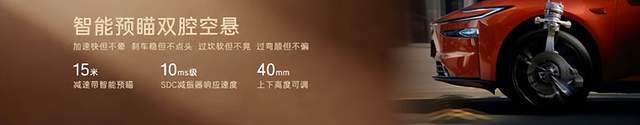 针对双腔空悬的体验感和耐用性,铂智7采用成本更高的双腔空悬加智能预瞄系统,不仅能调节高低,还可灵活切换悬架软硬,舒适性与操控性同步升级。智能预瞄系统以每秒50-100次的频率扫描前方路况,提前调整悬架高度与阻尼,让过坎更从容、更利落。