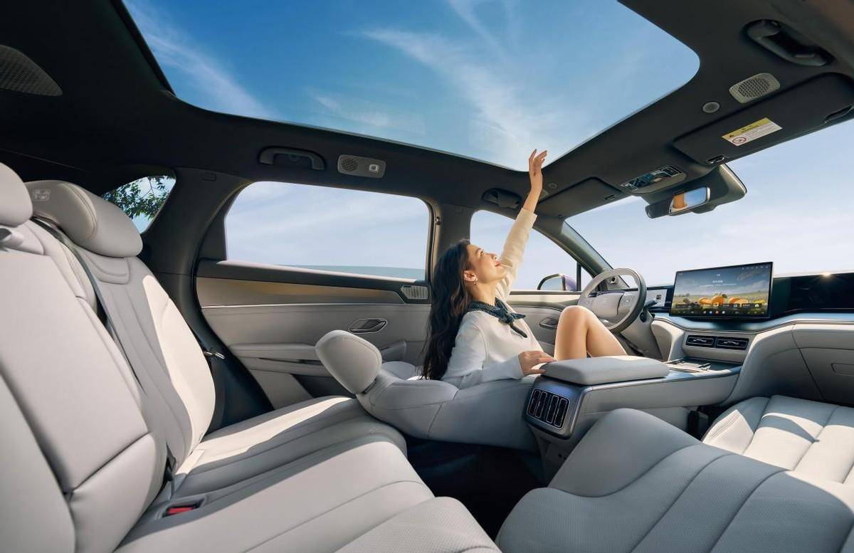 续航与动力方面,新车最高续航里程达710公里,配备最大功率270千瓦的电机,百公里加速时间为6.8秒,最高时速可达210公里/小时。车身尺寸方面,轴距为2840毫米,后排腿部空间986毫米,后备厢容积730升,并配有150升前备箱。前排座椅可放倒形成“大床”模式,搭配冷暖箱等配置,满足家庭出行场景需求。