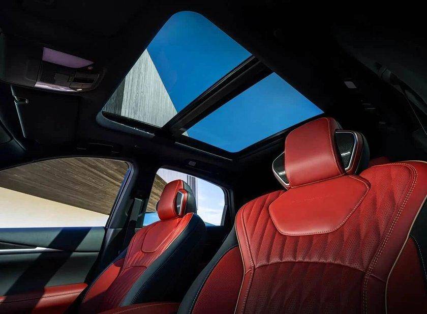 车身侧面线条流畅动感,车窗边框以及20/21英寸定制轮毂均加入镀铬饰条点缀,完美凸显轿跑SUV的运动身姿。车尾配备分段式LED贯穿尾灯,尾部整体同样采用黑化套件营造运动氛围。车身具体尺寸参数为长宽高5042mm/2184mm/1770mm,轴距达到2901mm。