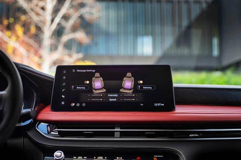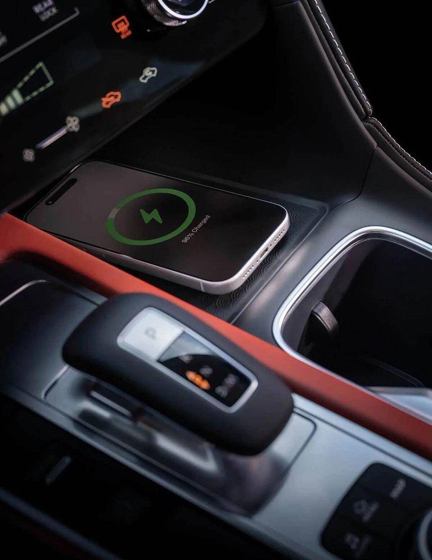 内饰座舱选用黑红撞色搭配,进一步烘托年轻化运动氛围,大面积软性皮质包覆提升车内豪华质感。中控台搭载精致小巧的12.3英寸悬浮中控大屏,适配谷歌智能应用生态;同时配备12.3英寸全液晶仪表与抬头显示功能,中控区域保留实用物理按键,车内还设置专属无线充电面板。前排双座椅自带头枕音响,全车配备20个高品质扬声器,座椅支持加热、通风、按摩多项舒适功能,车内采用舒适5座空间布局。
