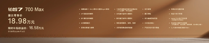 综合补贴权益后,铂智7全系进入20万内!过往20万级纯电家轿市场虽然处于堆料内卷阶段,仍存在长续航、高阶智驾和豪华配置三选一或三选二的困境,铂智7完美解决这一痛点,以超豪华配置+全球品质+超值定价彻底打破用户选择的“三角困局”。