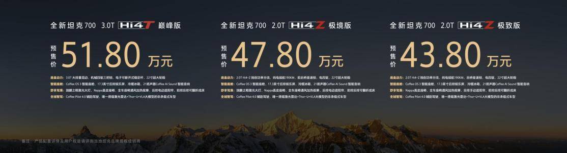 43.80万起的预售价,搭配专属尊享权益,坦克700以诚意降低旗舰准入门槛,为时代中坚提供“一车搞定全场景”的豪华选择。它不仅是坦克品牌向上的里程碑,更标志着中国豪华越野正式进入全域时代——从征服荒野到引领城市,从中国标杆到全球征程,坦克700以麒麟之姿,宣告中国汽车高端化的全新境界。