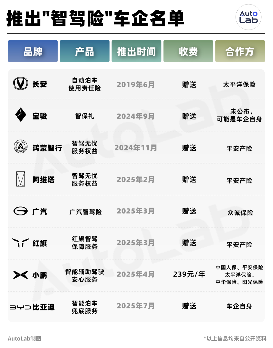 我们当时就做了一张推出“智驾险”的车企名单图,时至今日,这张名单几乎没有变化。
