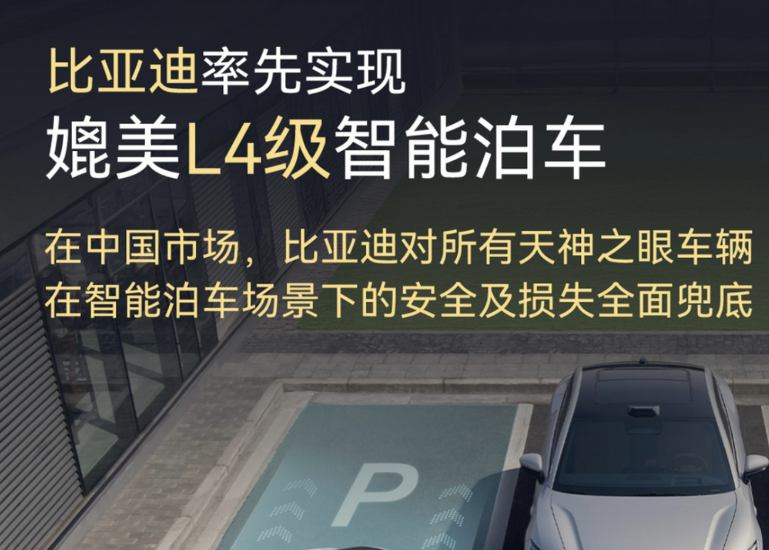 当时比亚迪宣布率先实现媲美L4级的智能泊车,并承诺为用户提供L4级功能的权益:对所有天神之眼车辆用户在智能泊车场景下的安全及损失全面兜底。