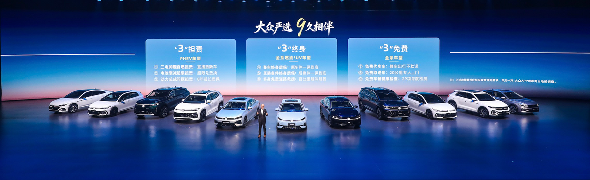 值得一提的是,除了产品矩阵的全面焕新,一汽-大众更在本次发布会上落地了全生命周期的服务升级,重磅推出“大众严选9久相伴”专属承诺,以“三担责、三终身、三免费”九大权益,为用户用车全流程保驾护航。其中,PHEV车型专享“三担责”服务,因三电质量导致自燃、电池衰减超限或动力总成质量问题,厂家全权担责,极端情况免费换新车、换电池;燃油SUV尊享“三终身”权益,涵盖整车终身质保、终身道路救援、原装备件终身质保;全系车型均可享受维修期间免费代步车、上门取送车、车辆健康检查的“三免费”贴心服务。同时,品牌还推出限时福利,4月1日-30日下订燃油车,用户1元即可兑换油卡,以实打实的礼遇降低用户出行成本。这个“三终身”权益、“三免费”贴心服务以及1元兑换油卡的福利,你买揽巡这款新车都是能够享受到的。