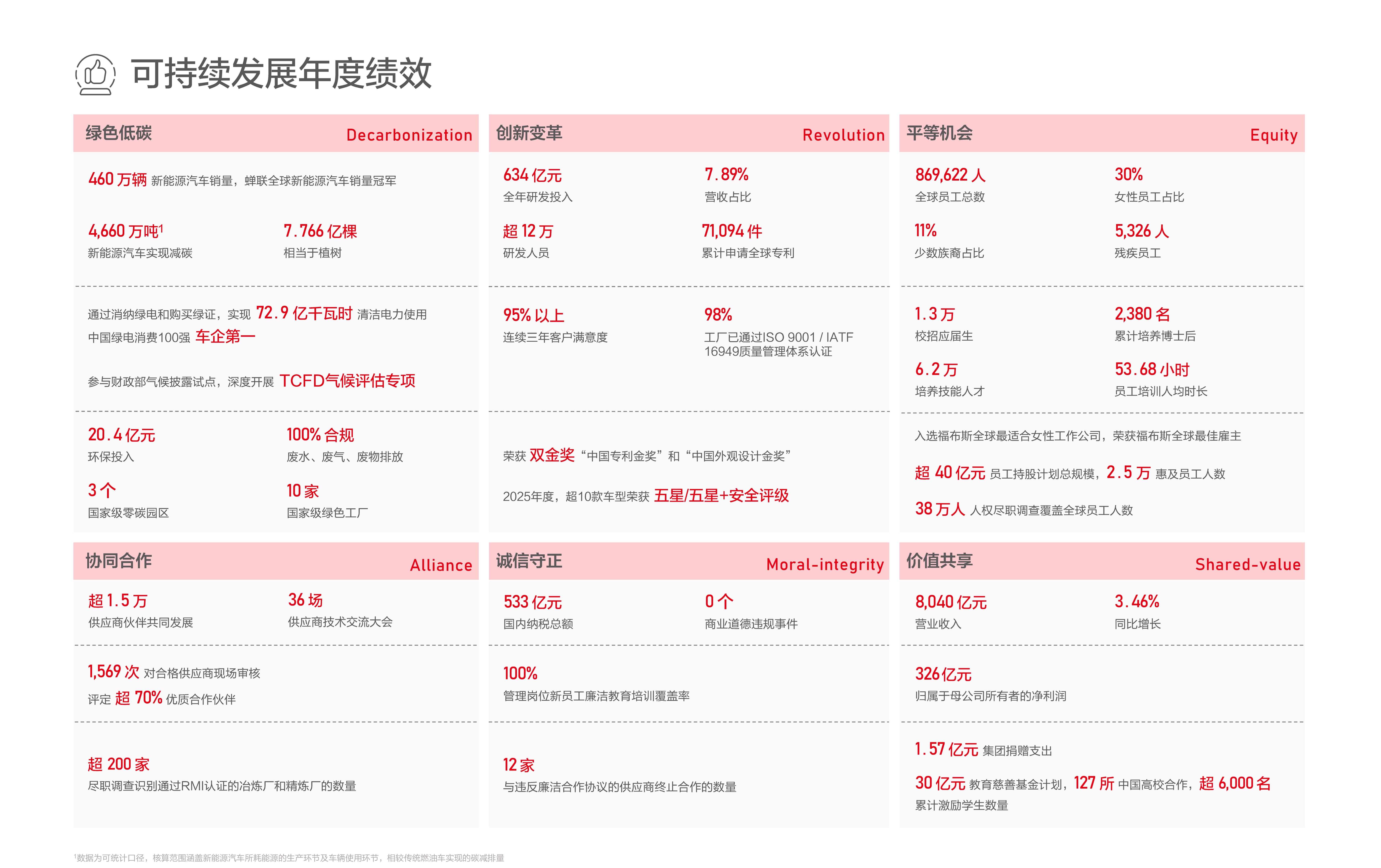 3月27日,比亚迪发布2025年可持续发展报告。这份报告不是一份简单的"成绩单",而是一家年销460万辆、营收超8000亿的科技巨头,在规模与责任之间找到平衡的"方法论"。当很多人还在讨论比亚迪"卖了多少车"时,比亚迪已经在思考另一个问题:如何让每一辆车、每一度电、每一块电池,都成为"为地球降温"的一部分。