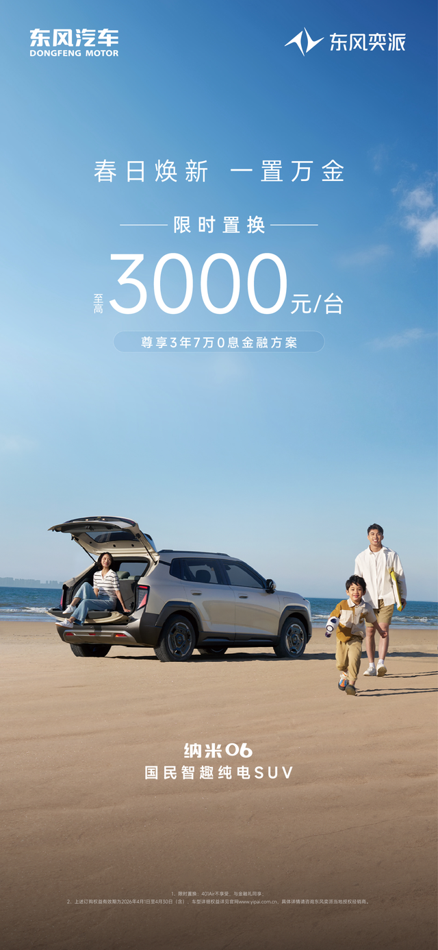 春日焕新,一置万金。从销量稳步增长到购车权益持续加码,东风奕派正以扎实的产品力与切实的用户回馈,陪伴更多消费者开启高品质出行生活。购车正当时,东风奕派诚邀广大消费者莅临全国经销商门店,亲身体验各款车型的开“新”实力,趁春日好时光,想省钱就现在!