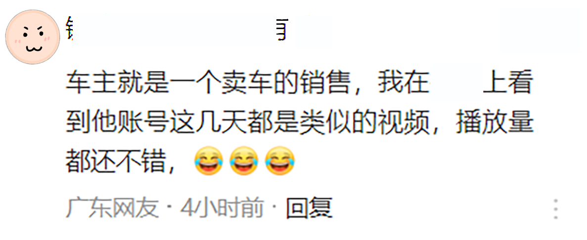 车主就是一个卖车的销售,在某短视频平台上看到其账号几天来都是类似的视频,播放量还都不错。