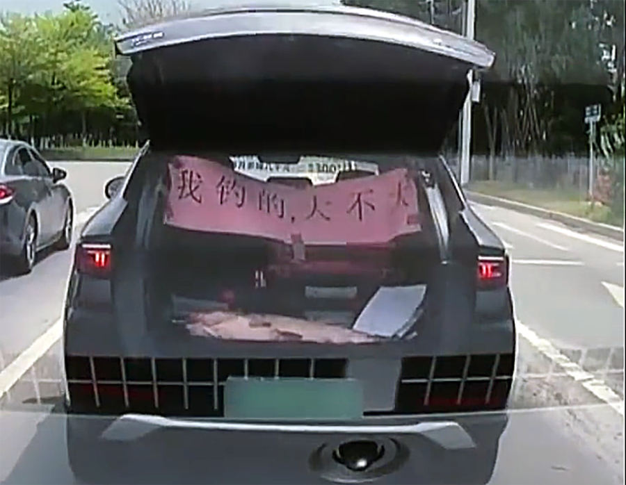 当娱乐梗变成营销梗的时候,这种梗就彻底变味了;会有人预判到自己一定能钓到大鱼吗?真正的垂钓爱好者也很难做出这样的预判,除非去人工饲养的鱼塘,可是在这样的前提下钓到什么鱼也都不值得炫耀。反之,能精准预判则说明早有安排,尤其是那道横幅,痕迹过于明显了。截止目前,该车司机尚未进行回应;如果事实情况真如该网友评论,那么其相关视频内容还涉及弄虚作假。