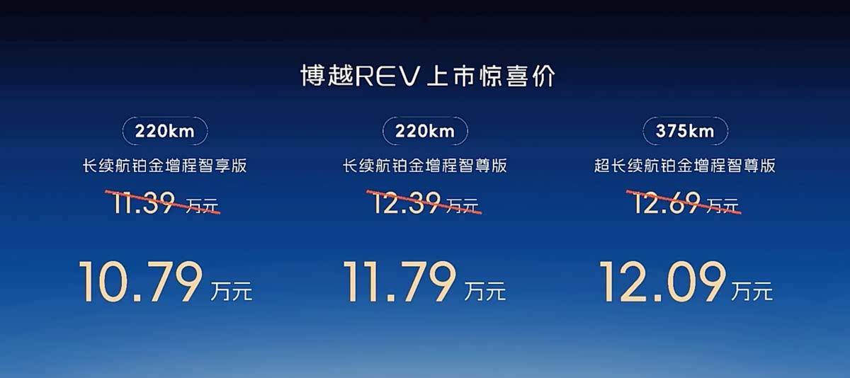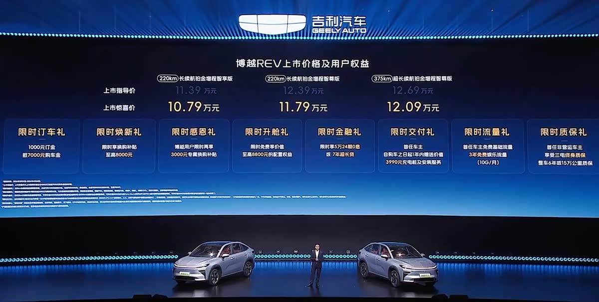 3月31日,吉利博越REV正式上市,新车共推出三款车型,售价11.39-12.69万元,上市惊喜价10.79-12.09万元。另外,新车还推出了诸多不错的权益,具体可以看下图。需要注意的是,新车定位为增程紧凑型SUV,最大的看点就在于纯电续航了,这个价格之下,它的CLTC纯电续航就有220km和375km,而且还支持3C快充,所以从这两个角度看,新车的性价比非常不错。