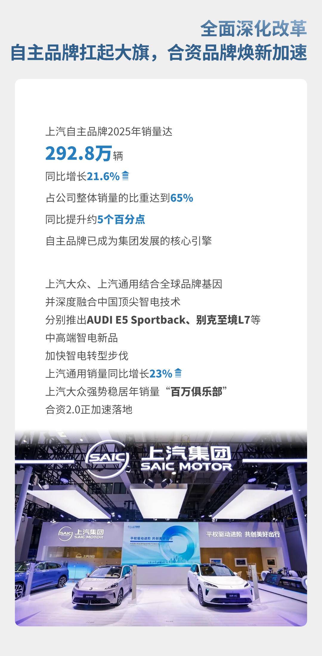 从自主到合资,从纯电到混动,一场史无前例的智电产品攻势正在铺开。这不仅是上汽过去一年改革成果的集中兑现,更是面向未来的全新起点。2026年,上汽将向着"产品魅力、科技实力、机制活力"的新目标,稳步前行。