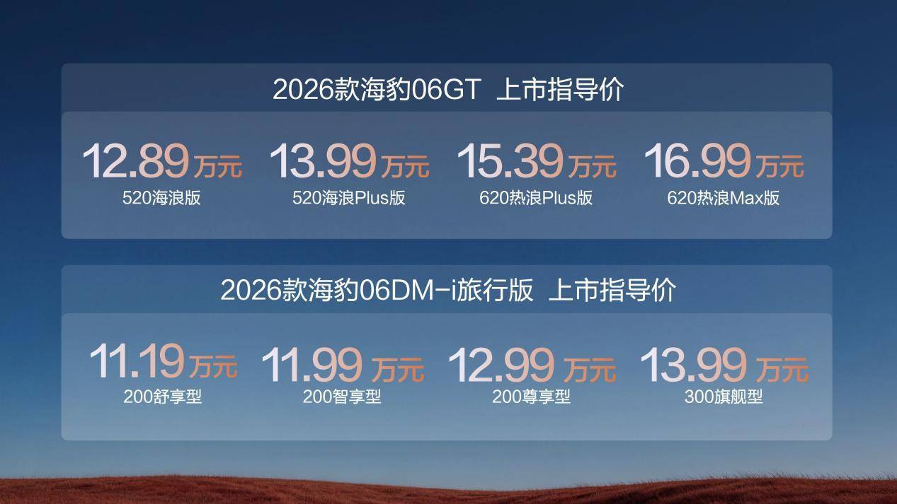 比亚迪2026款海豹06GT与海豹06DM-i旅行版上市,售价11.19万元起