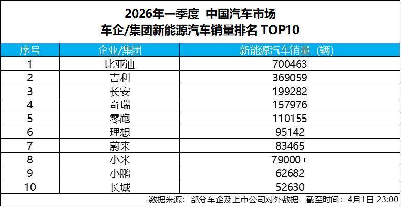 4 月 1 日,比亚迪发布 2026 年 3 月产销数据,单月总销量达300222 辆,强势突破 30 万辆大关,斩获中国车企销量冠军,并连续 58 个月蝉联中国新能源汽车销量冠军,持续稳固行业龙头地位。截至目前,比亚迪新能源汽车累计销量已超1580 万辆,一季度累计销售 700463 辆,以硬核数据印证技术与规模双重实力,助力一季度完美收官。