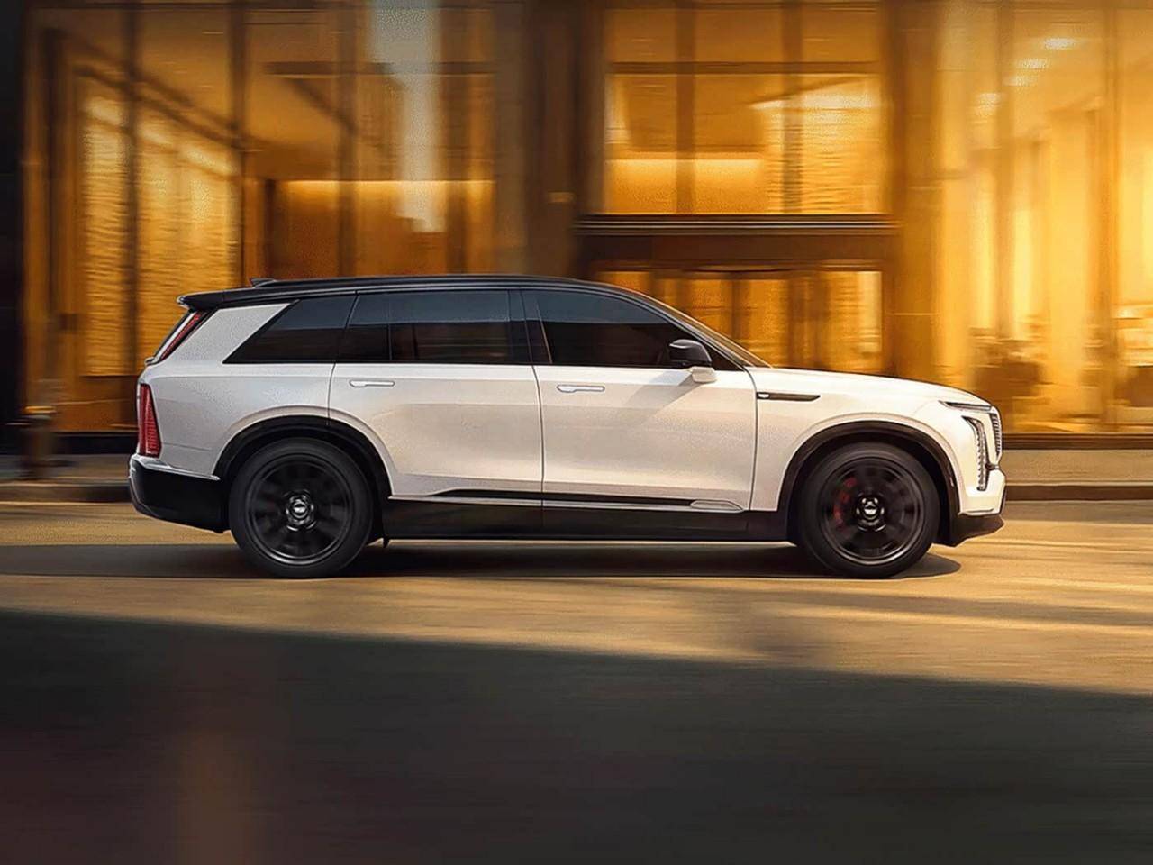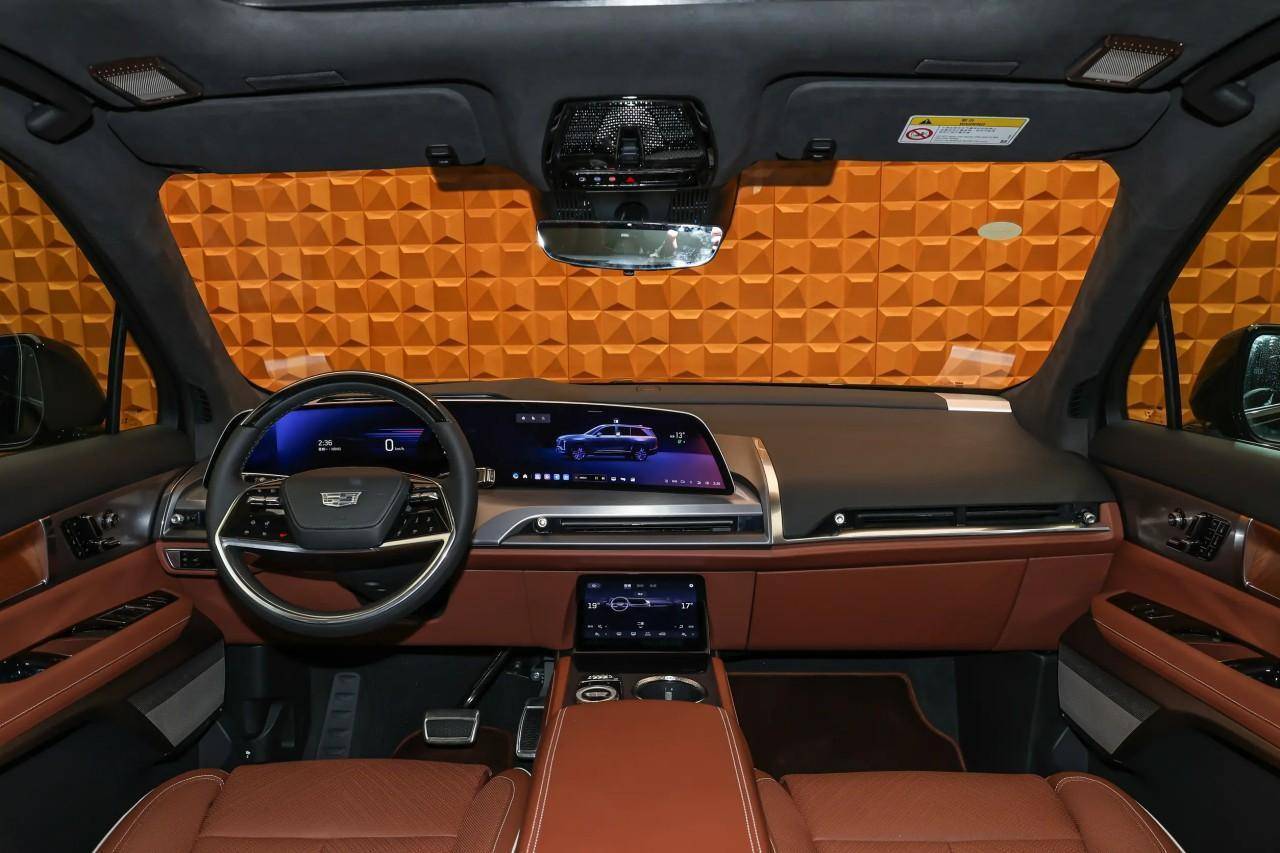 新车定位大型SUV,设计遵循凯迪拉克家族的电动化语言,辨识度确实很高。尺寸方面,新车长宽高分别为5222/2026/1799mm,轴距为3094mm。内饰部分,搭载33英寸曲面连屏,科技感这块还是可以的。空间方面,采用2+2+2的三排6座空间布局。