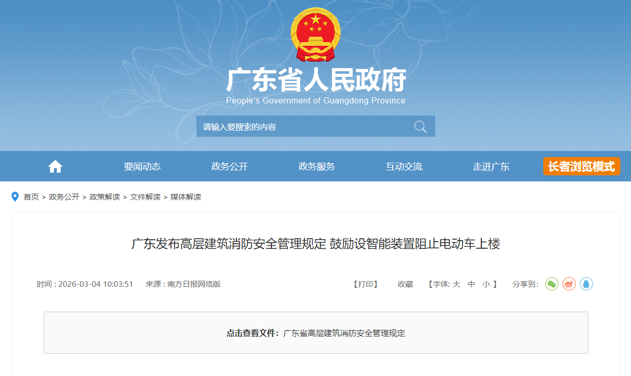 其解释中提到的广东省高层建筑消防安全管理规定》确实是从2026年4月1日起开始实施,但是没有禁止电动自行车(含电动摩托车)进入小区的要求。