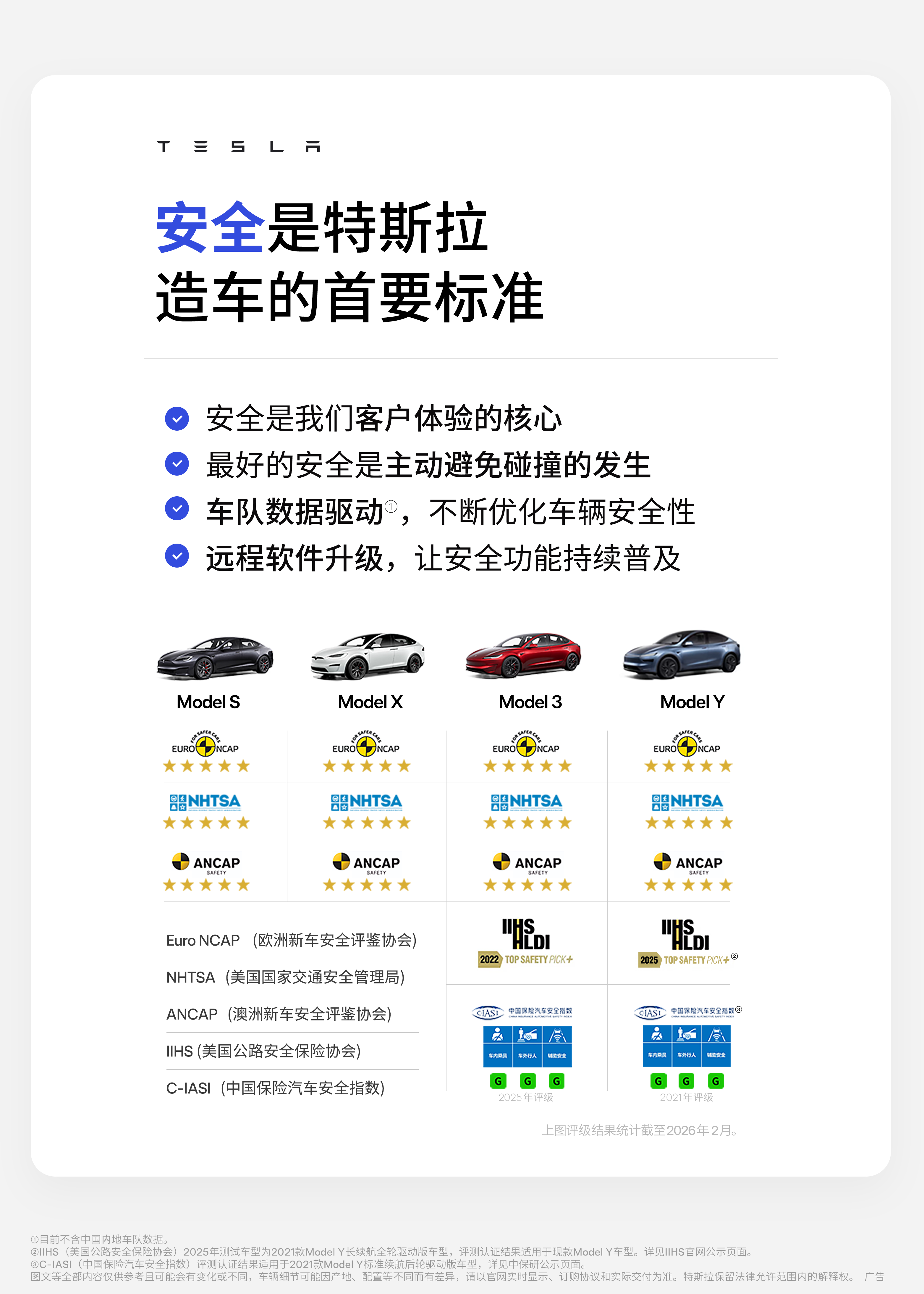 安全性方面,特斯拉秉持“安全至上”原则,全系车型按全球最严苛标准设计制造,S3XY车型已在美国NHTSA、欧洲Euro NCAP、中国C-IASI、澳大利亚ANCAP等多家权威机构测试中获得“五星安全”评级。上海超级工厂生产的车辆供应全球,需满足各地检验标准,叠加严格的质检流程——特斯拉副总裁陶琳透露,质检团队会定期破坏性拆解白车身,Model Y单车近3000个焊点、400多段涂胶均需逐项过关,报废抽检车辆获得的数据将优化生产工艺。此外,德国一位Model S车主晒出12年行驶超270万公里的记录,印证了特斯拉车辆的耐久可靠性。