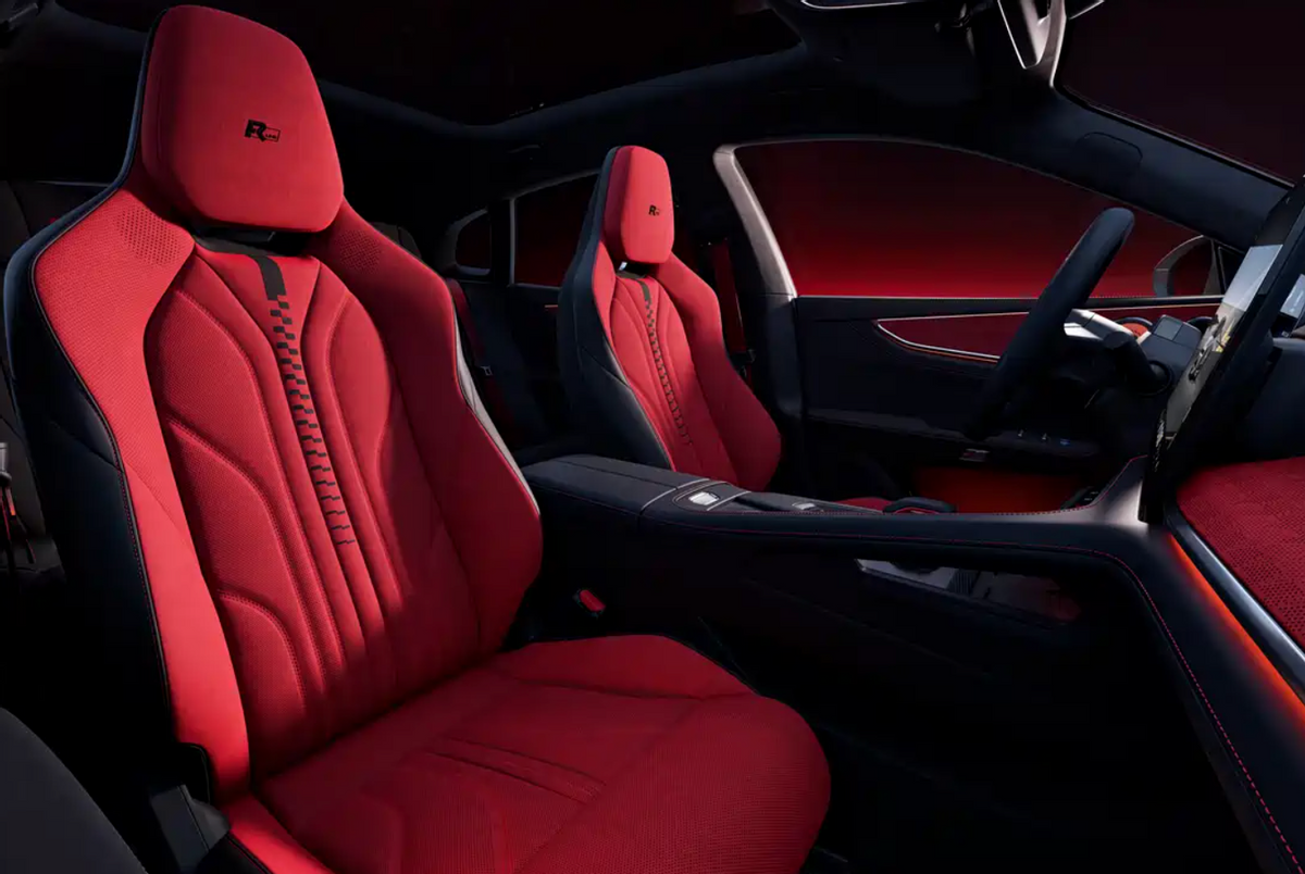 提供FR-LINE性能套件,包括黑曜红性能内饰、Dinamica 麂皮绒性能座椅、FR-LINE 座椅刺绣、带赛用双控旋钮的性能方向盘、主驾座椅靠背主动侧翼支撑,以及FR-LINE迎宾踏板、性能金属踏板,气场直逼顶级性能版 001 FR。
