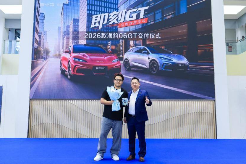 4月3日,“年轻人第一台GT”比亚迪2026款海豹06GT新车交付仪式在深圳举行,作为海洋网又一搭载第二代刀片电池和最新闪充技术的重磅车型,上市售价12.89万元-16.99万元,目前全国多城实车已到店,新用户从下单到上路,提车交付快人一步。2026款海豹06GT以全新颠覆性闪充体验、全面高品质进阶实力和“开售即体验、上市即交付”的真挚承诺,携手年轻用户共赴更高效、更智能的潮趣出行新生活。
