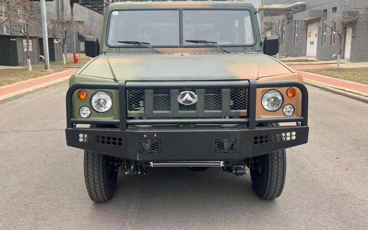 外观部分,新车的车头造型和勇士乘用版基本一致,整体造型轮廓很方正硬朗,使用了五孔式的中网格栅设计,大灯是分体式的一大两小圆形灯组,视觉效果很复古。从申报信息来看,新车会有两种前杠造型,分别为两侧带牛栏杠和上部带牛栏杠设计。