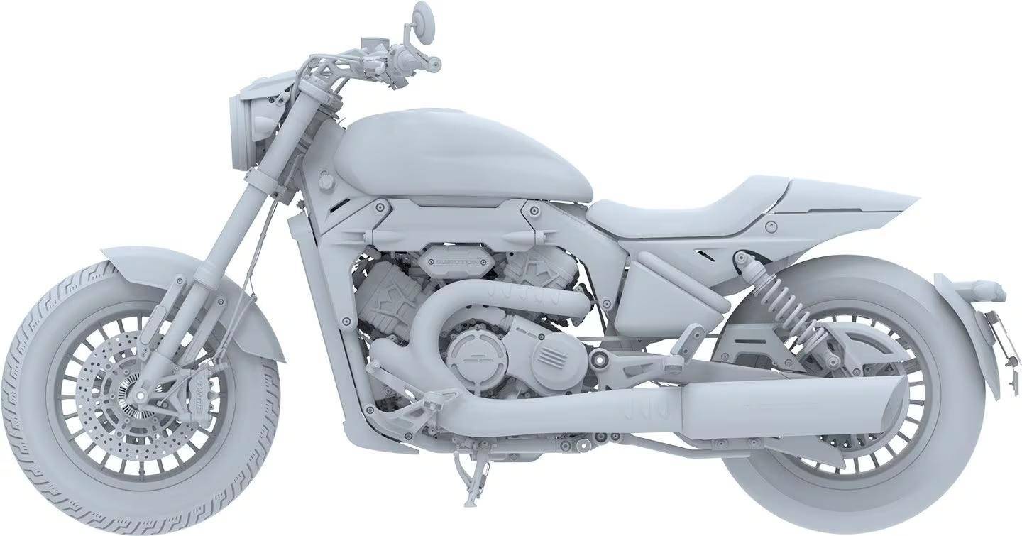 这次流出的专利图中,这辆尚未命名的巡航车继承了概念车那种螺栓固定的铝合金车架外观,但有趣的是,仔细观察前侧方的结构,会发现内部其实藏着一组钢管摇篮式车架; 这代表外层那些看起来很硬派的铝合金铸件,很可能只是纯粹的装饰盖,用来提升视觉上的肌肉感与科技感,本质上还是走大众化且易于生产的结构设计。