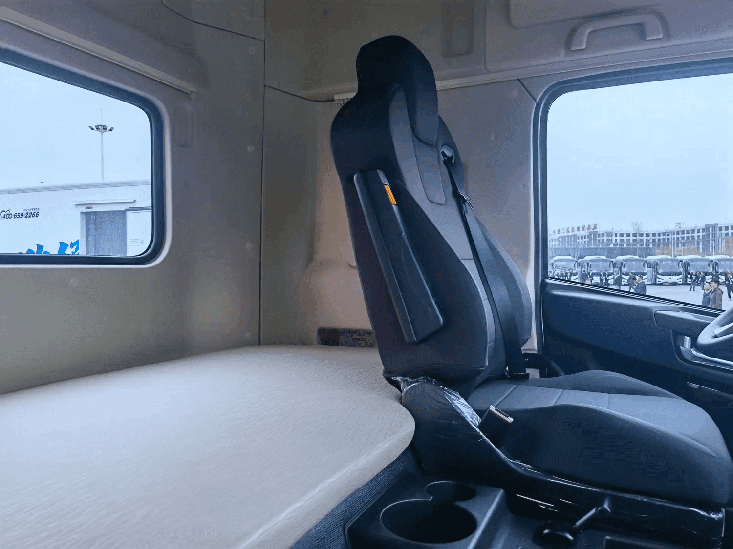 同时,新车配备了较为宽敞的卧铺,再加上驾驶室还配有后窗,休息时车内环境更加舒适。
