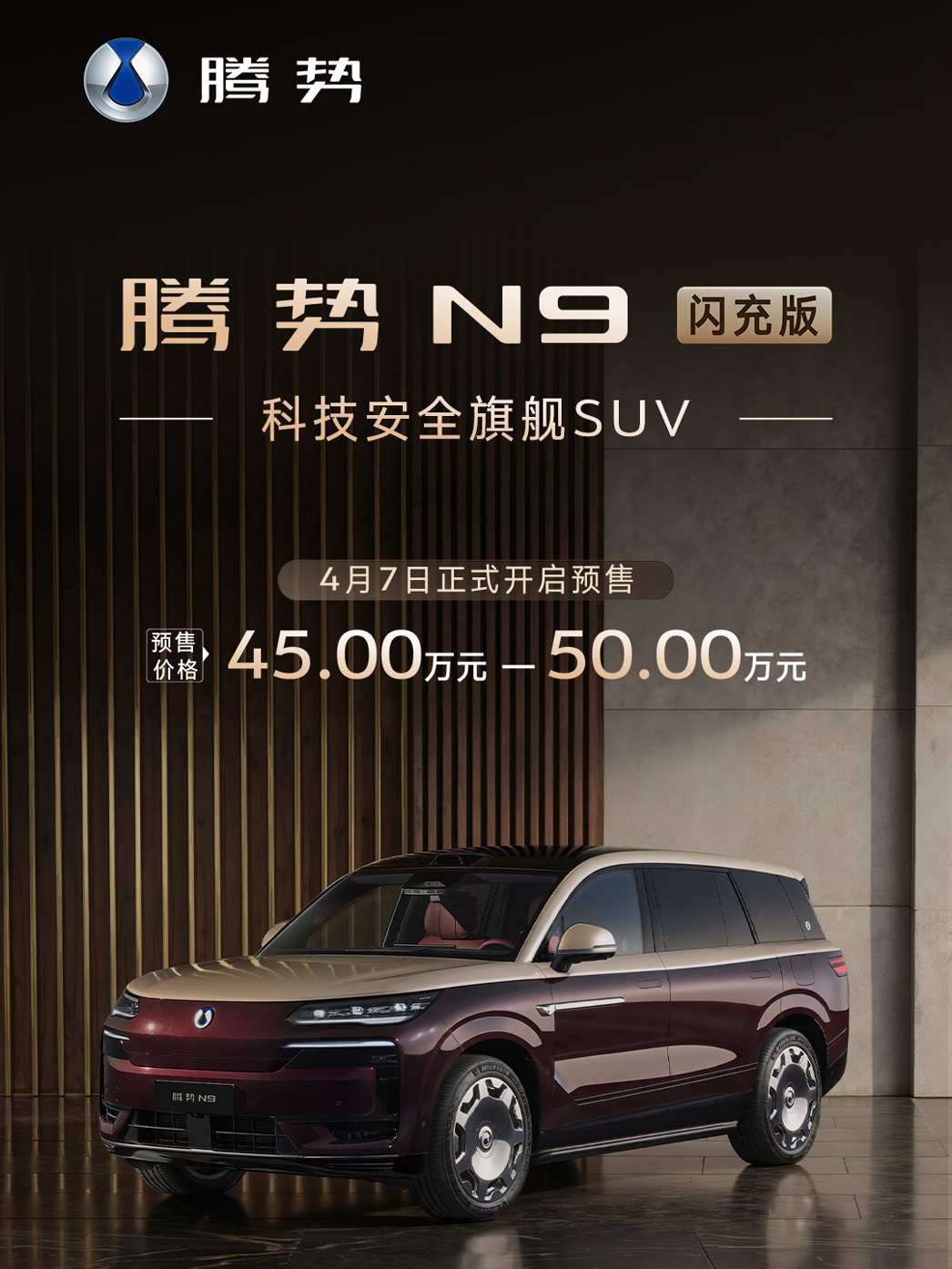 4月7日,腾势N9闪充版正式开启预售,45-50万元的价格区间一经公布便引发热议。放在今天这个竞争已趋于白热化的50万级豪华SUV市场,这个定价到底值不值?先给出我的结论:不但不贵,反而极具技术溢价能力,但品牌力能否撑起这一定价仍是最大变量。