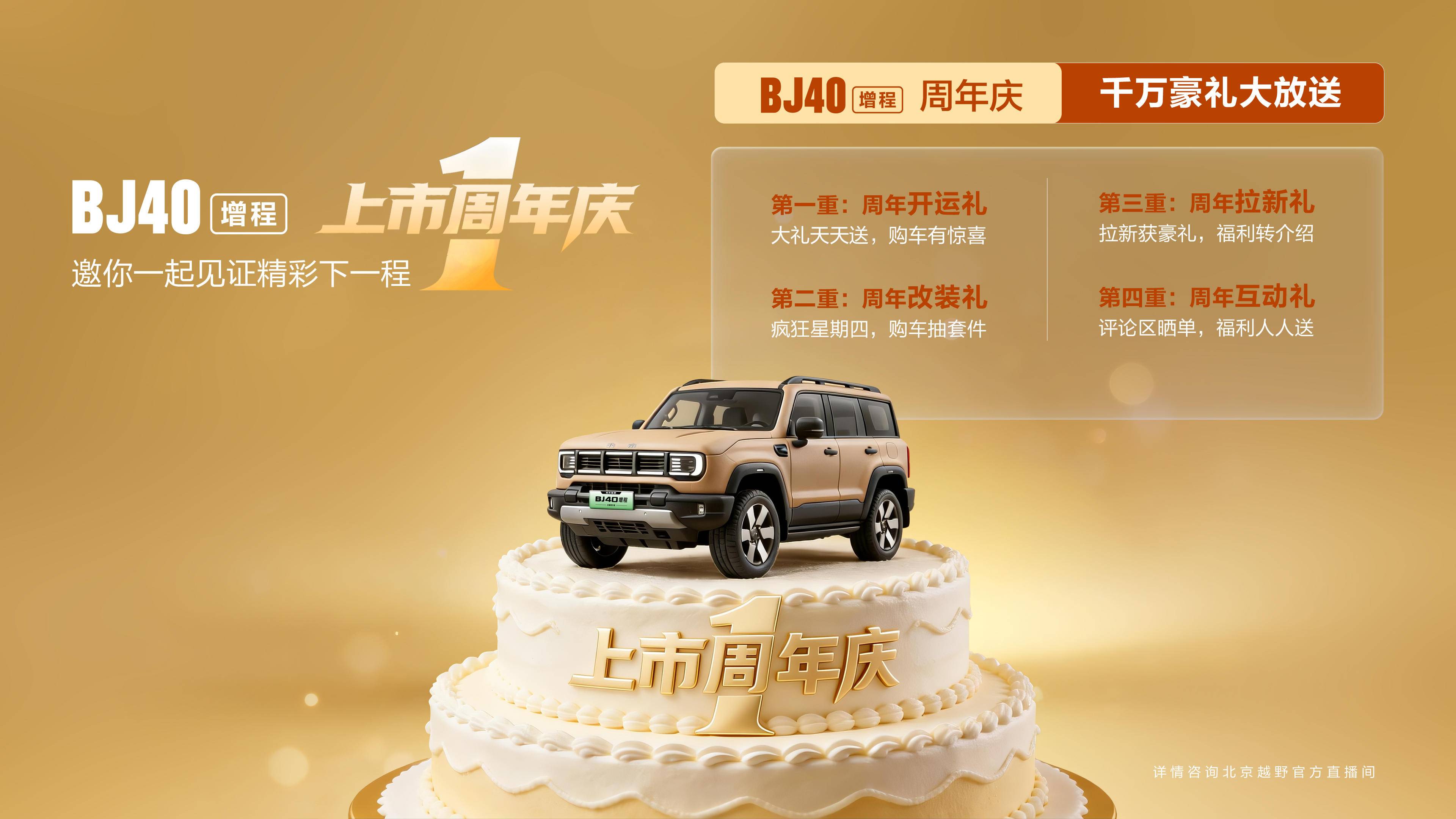 “BJ40增程周年庆”活动期间可享四重豪礼: