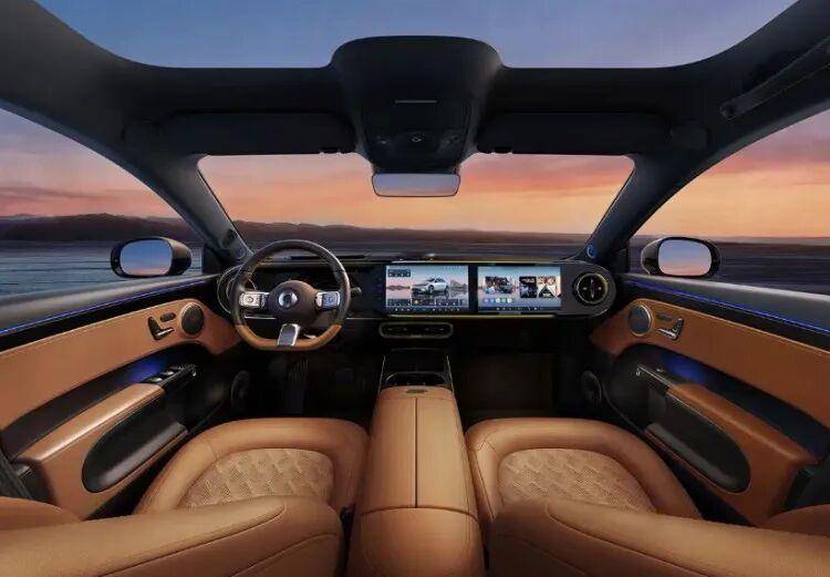不得不说,这套内饰在细节方面非常注重设计感,比如双联屏的边框采用经典的胶囊元素、空调出风口营造出类似飞机涡轮的造型,车门面板上将会内嵌千鸟格图案点缀、中控台中间区域还配备升降扬声器,来提升其档次感等等。
