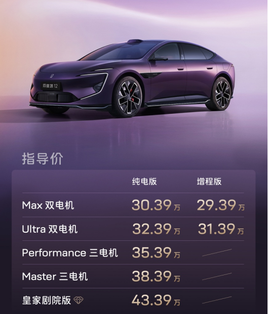 新阿维塔12提供纯电、增程两种动力,共7款配置,售价29.39万-43.39万。