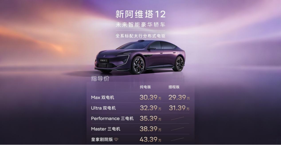 作为华为乾崑战略合作 2.0 首款上市车型,新阿维塔 12 并非简单改款,而是一次智能化代际跃迁。它不仅是华为乾崑深度赋能的旗舰轿车,更率先落地最新技术成果,以全域智能与底层安全,重新定义旗舰智能轿车价值标准。新车提供纯电与增程双动力选择,共 7 款配置,售价区间 29.39 万元 —43.39 万元,并推出多重购车礼遇:5 年贷前两年 0 息、万元购置税补贴、外饰色与座椅升级、置换增购补贴等,全面降低旗舰智驾门槛。