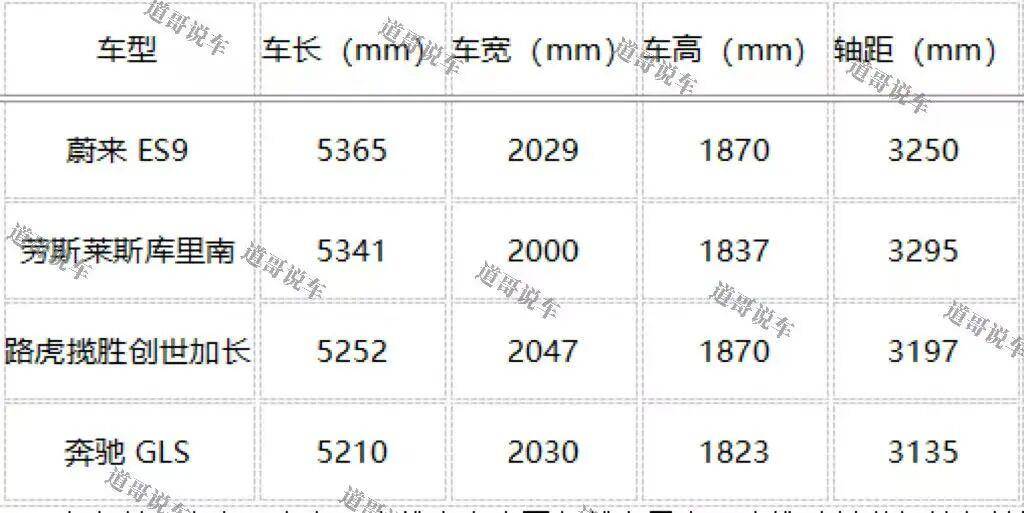 蔚来ES9的车身尺寸为5365/2029/1870mm,轴距3250mm。这是什么概念?我们做一组直观对比: