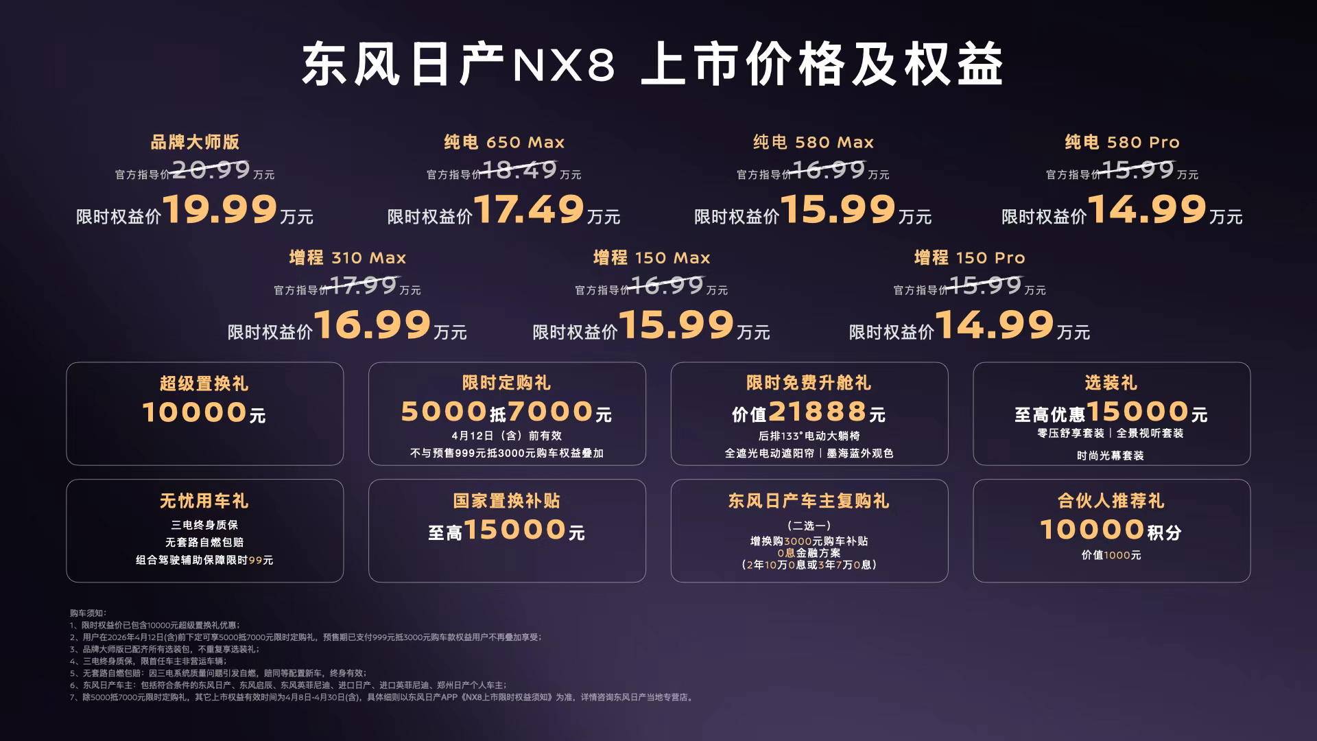 NX8的核心竞争策略可以归结为:在14.99-19.99万元的限时权益价区间内,提供一套异常清晰且密集的“配置阶梯”,让不同预算的用户都能找到对应选择。