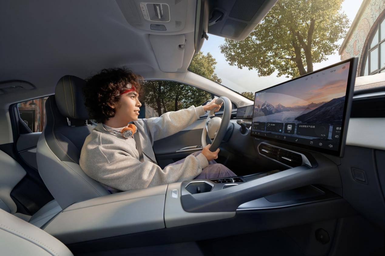到了智能科技层面,新车搭载支持滑移的15.6英寸中控屏,主驾、副驾用屏都能够找到更好的角度,内置8155芯片,高算力赋能让互动体验更流畅。同时还有融合了AI大模型的智能语音控制,搭配远程控制用车更便捷。此外,新车支持全品牌互联,车机互联不挑品牌、型号。