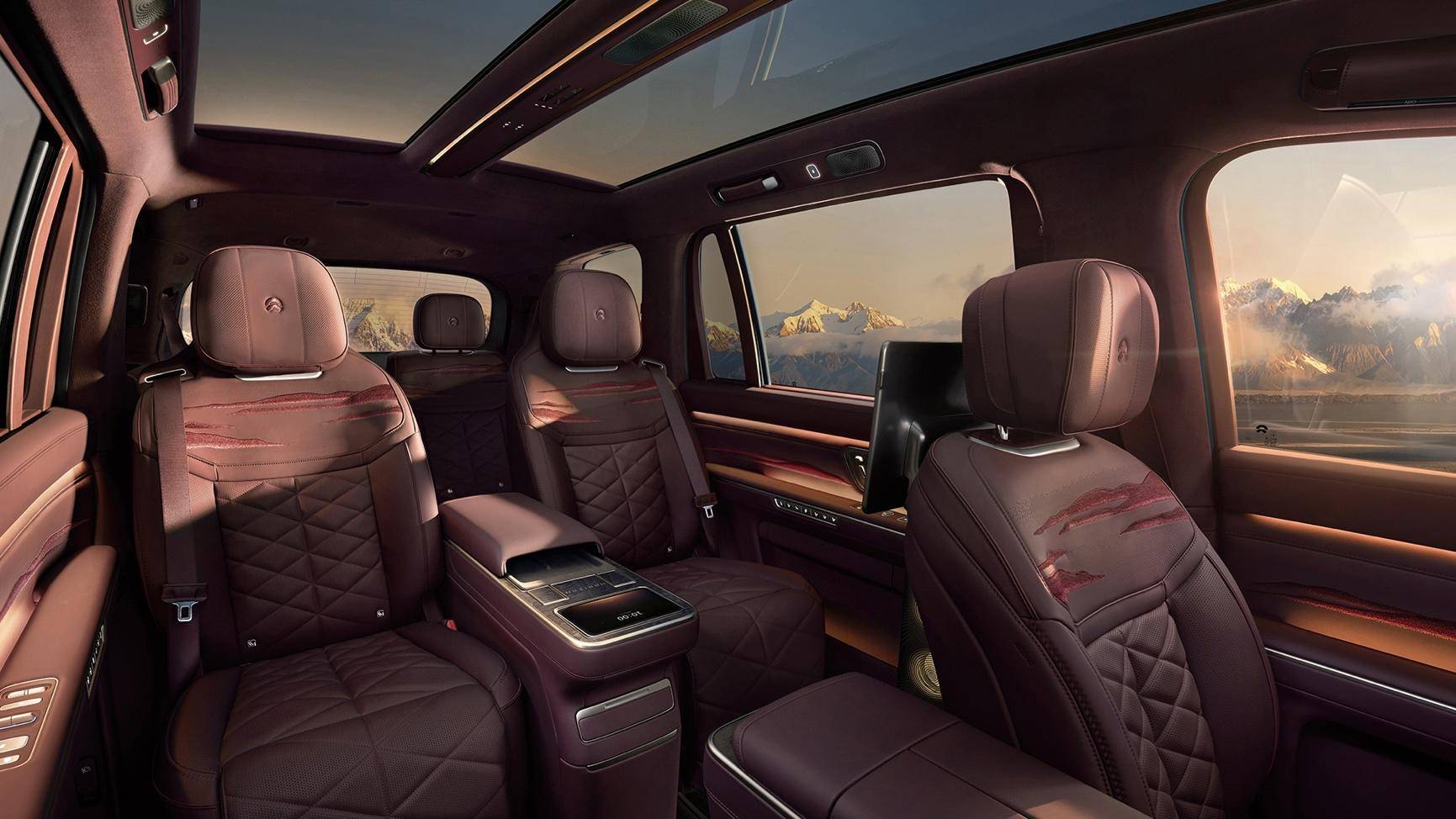 座舱通过独创「天空岛」与「智能行政中岛」分割出左右对称布局,打造出开放而专属的行政空间。ES9地平线特别版带来「寰宇晨晖」与「寰宇星河」两种车色主题;内饰汲取中国山水画的美学灵感,以传世千年的非遗苏绣工艺,用近40万针脚交织出壮美「河山锦绣」图,将天地之美融入其中。
