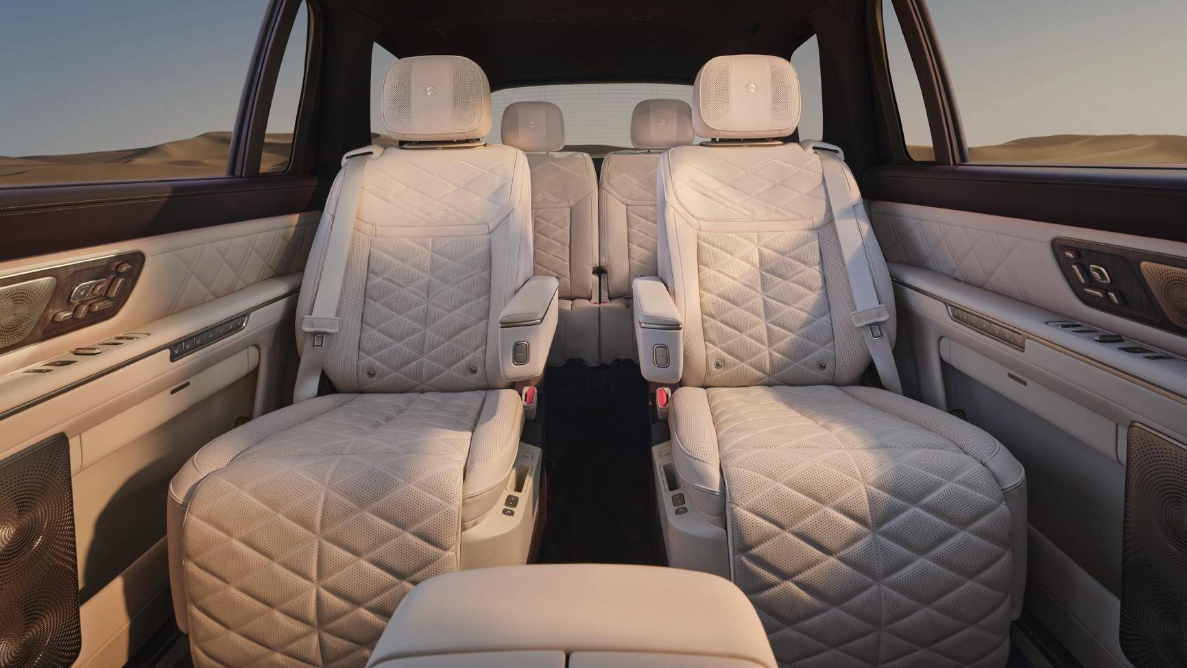 ES9的飞航行政座椅采用蔚来自研高端座椅平台。二排飞航零重力行政座椅,长达2.3米的连贯椅面配合覆盖全身42点全维深层按摩系统,包括行业首创20点机械足底按摩,带来极致身心放松。座舱全球首发阵列式LC智能隐私调光车窗,拥有行业最快变色速度,原创的智能行政中岛配合顶级双16英寸专属行政屏、高清视频会议系统及专属磁吸茶台,让商务体验高效而得体。