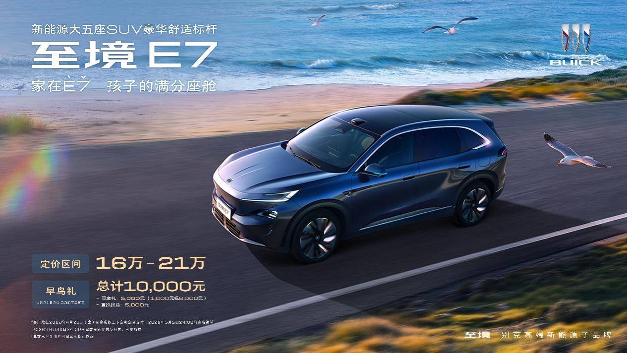 别克至境E7公布三款车型配置,定价区间16万-21万元,即日起至4月21日(含)前下定可享10,000元早鸟礼