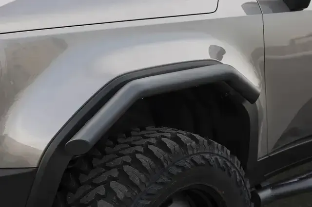 巨大的轮组直接突出于车体,KUHL RACING巧妙地在原厂挡泥板上加装了60mm钢管作为轮眉,粗粝的钢管设计不但能更好地保护车体,而且风格与前后护杠相呼应。加上卡扣式侧踏板同样采用超粗钢管打造,梯形向上弯曲的造型兼顾实用性与设计感,既能作为上下车踏板,又能在越野时保护侧裙。车顶低位弯管行李架与车身浑然一体,配上40英寸IPF LED灯条,夜间越野照明无忧。