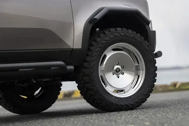 为了让这台LC250拥有更强的通过性,加上外观更加魁梧,KUHL RACING为其配备了JAOS高度可调悬架与垫片组合,整车升高约178mm。搭配37英寸横滨GEOLANDAR M/T G003泥地轮胎和22英寸KUHL VERZ-WHEELS DDR03锻造轮毂,离地间隙达到惊人的400mm。
