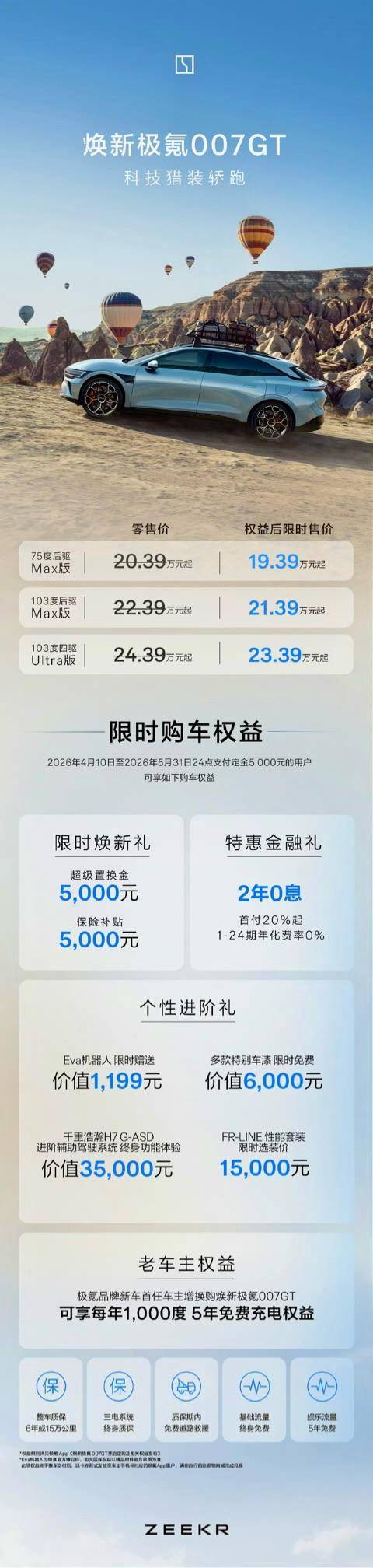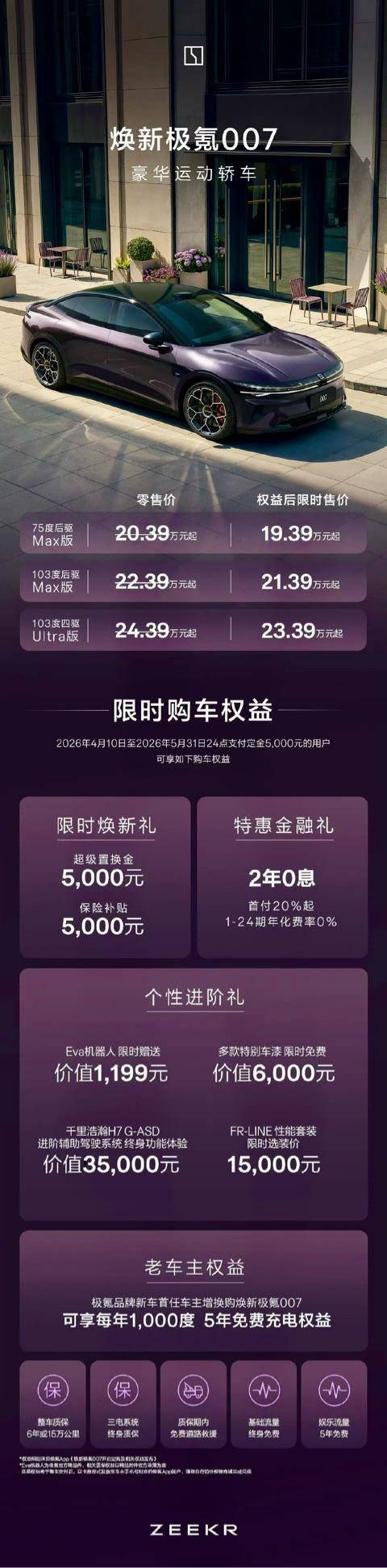 此次焕新的极氪007与007GT正式上市,车型权益后的限时售价为193900元至233900元,精准落在20万级纯电轿车区间,对于这个价位的购车人群来说,有着很强的针对性。