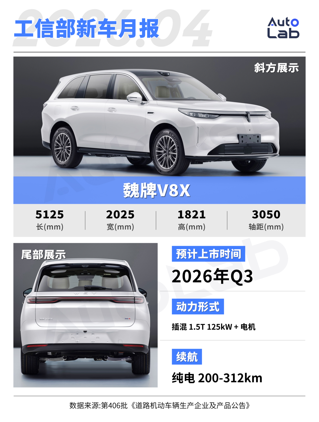 除了“9系”,魏牌这次还补上了“8系”大五座SUV V8X。