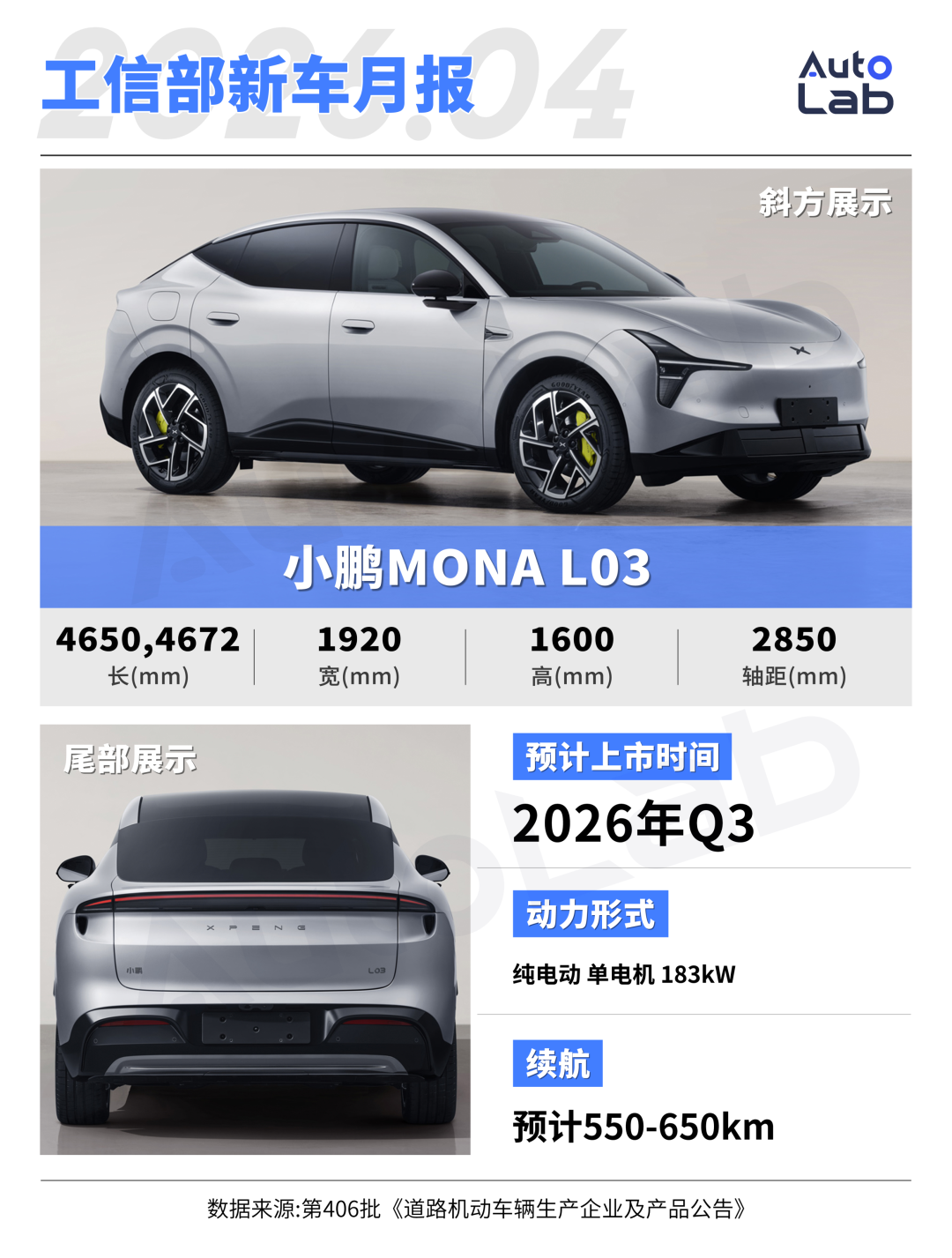 传闻已久的小鹏MONA SUV终于落地,正式命名为MONA L03。