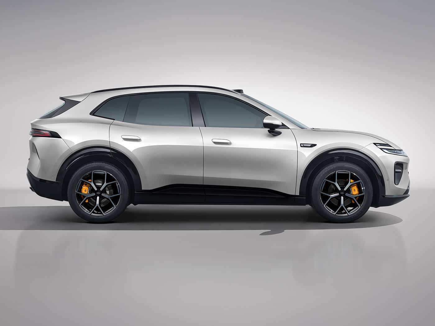 侧面看点也很多,比如车顶线条不是很夸张,但后风挡的倾斜角度较大,所以空间和设计都有兼顾,这样的设计很不错。门把手为半隐藏式设计,所以还是以实用为主。另外,新车还有双五辐式枪灰色轮圈以及黄色刹车卡钳,不过这个配置大概率选装或高配独有。尺寸方面,新车的长宽高分别为4837/1970/1670mm,轴距为2940mm。作为对比,理想i6的长宽高分别为4950*1935*1670mm,轴距为3000mm,可以说理想整体更大一些。