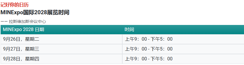 2028年美国拉斯维加斯矿业展(MINExpo)重磅来袭!这一全球矿业领域最具影响力的顶级盛会,由北京盛华国际展览有限公司——李行舒负责中国区组展工作,将于2028年9月26 - 28日在美国拉斯维加斯盛大举行,由美国国家矿业协会(NMA)主办。